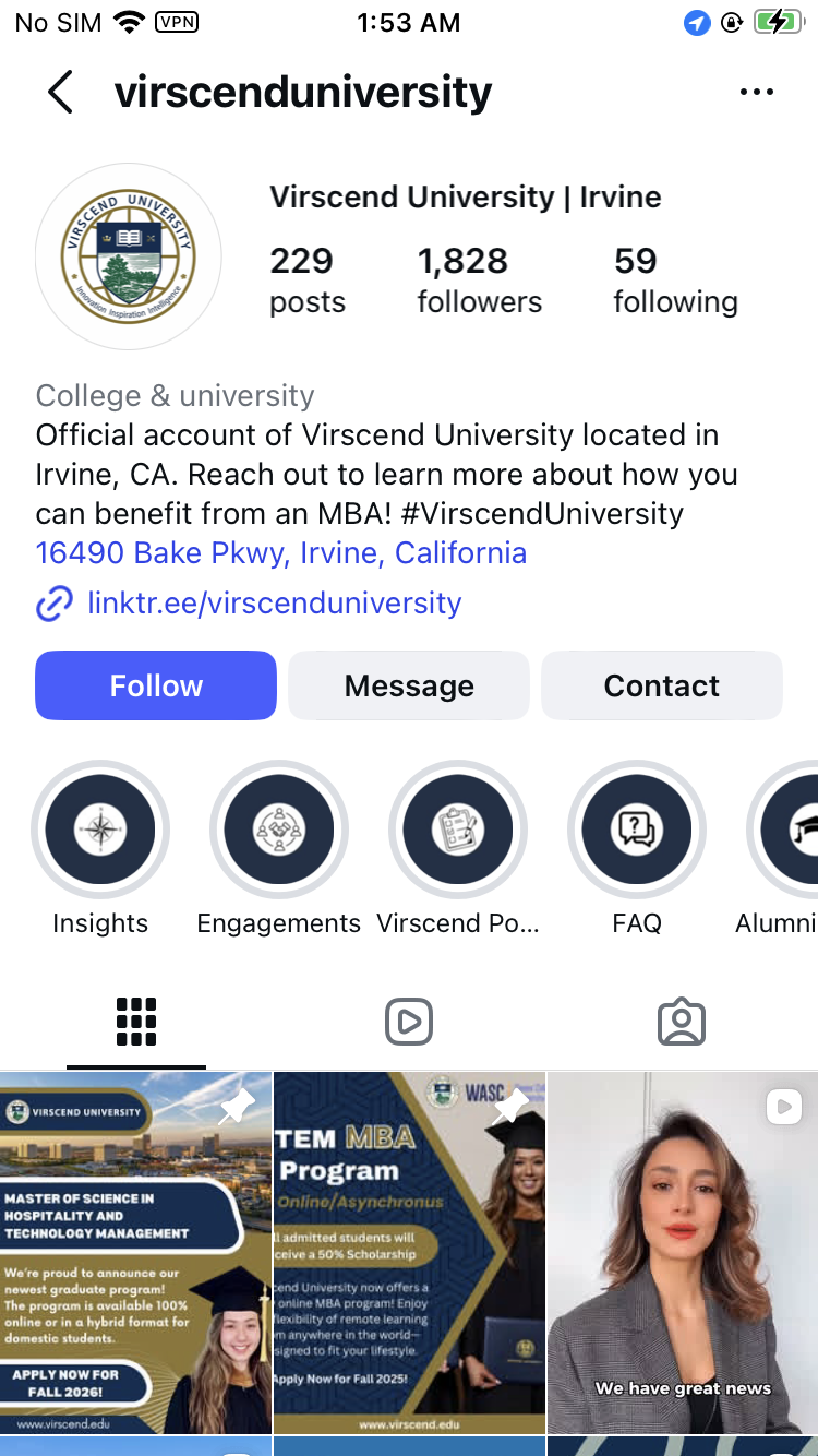 We handle full-stack, multi-platform online enrollment marketing for Virscend University. While the follower base is modest, engagement and conversion rates are strong. Content is adapted across platforms to maximize reach, effectively connecting with the target audience in China.